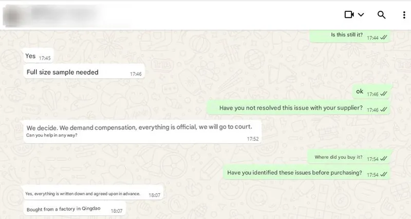 आम्ही अलीकडेच शिकलो की एका ग्राहकाला प्रतिस्पर्ध्याकडून ताडपत्री ऑर्डर करताना गंभीर समस्या आल्या. त्यांना कमी किमतीचे आमिष दाखविण्यात आले आणि कारखान्याला उत्पादन पूर्ण करण्यासाठी दोन महिने लागले. डिलिव्हरी केल्यावर, त्यांना आढळले की उत्पादन स्टॉक संपले आहे आणि त्यांनी मुळात मान्य केलेल्या आकारात नाही. ग्राहक सध्या कायदेशीर कारवाईच्या विचारात आहे. खाली या ग्राहकाशी माझ्या संवादाचा उतारा आहे.